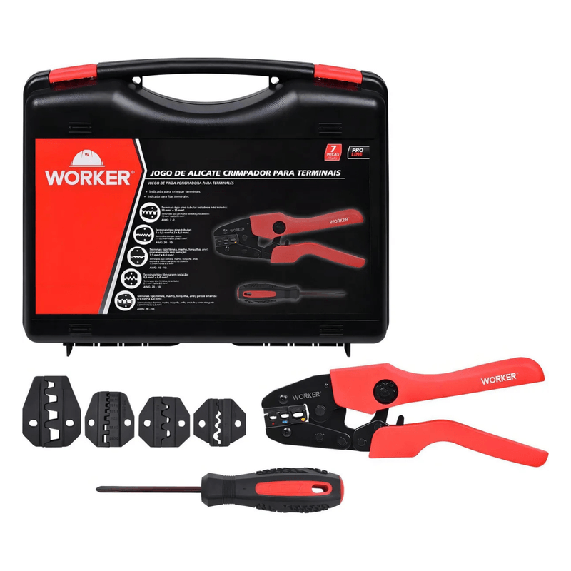 Alicate Crimpador Para Terminais jogo 7 peças 199566 Worker