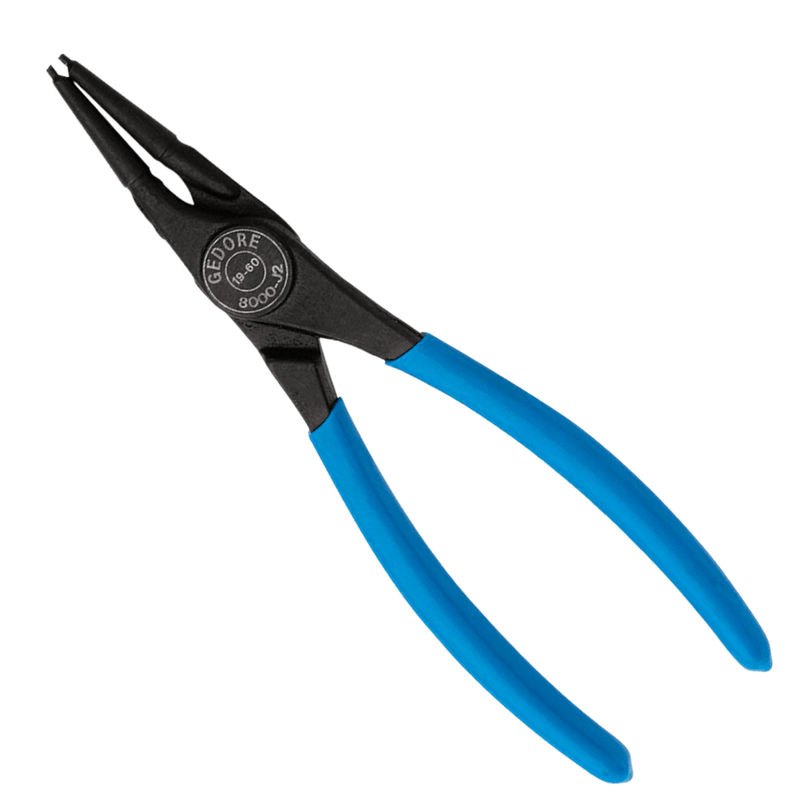 Corpo em aço Gedore-Vanadium e empunhadura plastificada na cor azul padrão Gedore. Acabamento escurecido. Alicate com pontas fixas e retas. Para anéis de segurança internos conforme norma DIN 472 e DIN 984. Alicate para anéis internos pontas fixas e retas ref. 8000 J0, 8000 J1, 8000 J2 e 8000 J3, são fornecidos em embalagem autoserviço.