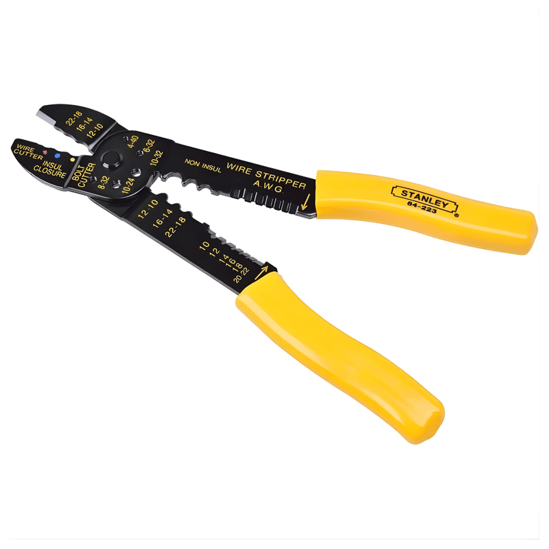 - O Alicate Prensa Terminal 9" 84-223 Stanley foi desenvolvido por especialistas para oferecer eficiência, segurança e versatilidade em aplicações profissionais. Produzido em aço cromo-níquel de alta resistência, garante excelente durabilidade mesmo em uso intenso. Seu cabo antideslizante conta com abas protetoras que proporcionam melhor controle e mais segurança ao usuário, além de um design ergonômico que o 84-223 Stanley oferece conforto e praticidade durante a aplicação. Indicado para instaladores de redes de computadores, telefonia e painéis elétricos, é uma ferramenta versátil que permite cortar, descascar fios e também atuar como prensa terminais com precisão. Com qualidade comprovada, o 84-223 Stanley é a escolha ideal para quem busca desempenho confiável e acabamento profissional.