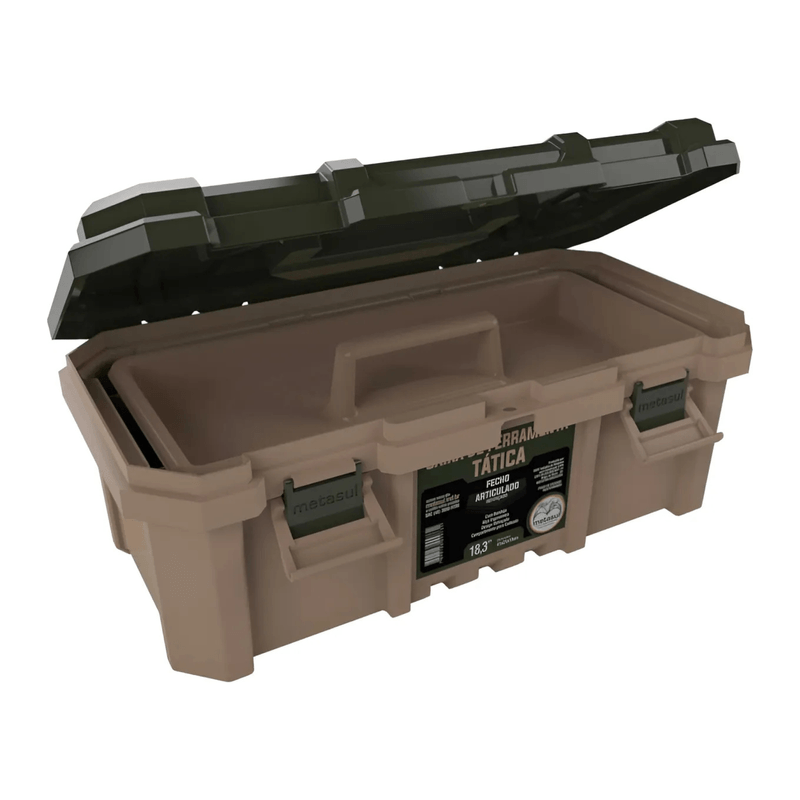 A Caixa Plástica Para Ferramentas Tática 18.3" Camper Verde 13601024 Metasul é a solução ideal para quem deseja armazenar, transportar e organizar suas ferramentas de forma prática e eficiente. Fabricada em polipropileno de alta qualidade, ela oferece robustez e resistência a impactos, garantindo longa durabilidade. Com bandeja interna removível, a 13601024 Metasul facilita a organização de pequenas peças e ferramentas, otimizando o espaço disponível. Seu design versátil atende tanto a profissionais quanto a entusiastas do DIY, enquanto a alça resistente permite um transporte seguro e confortável. O fecho da 13601024 Metasul é resistente da caixa assegura que todas as ferramentas fiquem protegidas durante o transporte, combinando praticidade, segurança e eficiência em um único produto.