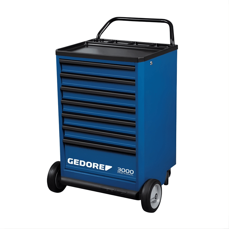 O Carrinho Para Ferramentas 7 Gavetas 3000 Gedore foi desenvolvido para oferecer organização, praticidade e segurança no dia a dia profissional. Com estrutura em aço reforçado e acabamento resistente, conta com sete gavetas de abertura total , sendo seis com divisórias e uma maior para ferramentas de médio porte, garantindo excelente capacidade de armazenamento.