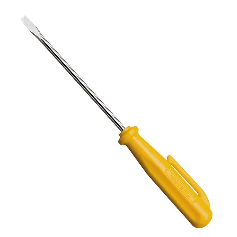 A Chave de Fenda Clipe Tramontina Yellow com Ponta Chata 1/8x3 Polegadas é a ferramenta que vai levar muito mais praticidade ao seu dia a dia. Para que você esteja sempre preparado, ela tem uma alça em seu cabo de polipropileno injetado, que além de não atrapalhar em nada no conforto da empunhadura, possibilita a você prender a ferramenta em cintos, bolsas e outros lugares em que for necessário. Sua haste é produzida em aço temperado, que a torna altamente resistente e durável, garantindo um trabalho com execução altamente eficaz.