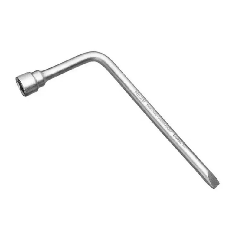 Seu formato em L proporciona mais ergonomia e torque, facilitando o uso, enquanto a espátula integrada permite a remoção de calotas com praticidade. o 29-19 Gedore conta ainda com acabamento niquelado, garantindo proteção contra corrosão e maior vida útil, sendo indispensável para oficinas mecânicas.