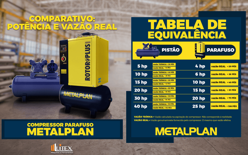 - O Compressor Parafuso Rotor Plus 4 HP 7BAR 220V 67 Litros Metalpan é pioneiro na tecnologia rotary screw para pequenas e médias vazões, consolidando-se como uma das principais referências do mercado e o equipamento mais vendido no Brasil na faixa de até 25 hp. Desenvolvido para substituir os antigos compressores de pistão, o Rotor Plus 04 oferece ganhos significativos de produtividade, eficiência e economia, atendendo empresas que necessitam de ar comprimido confiável e de alto desempenho.