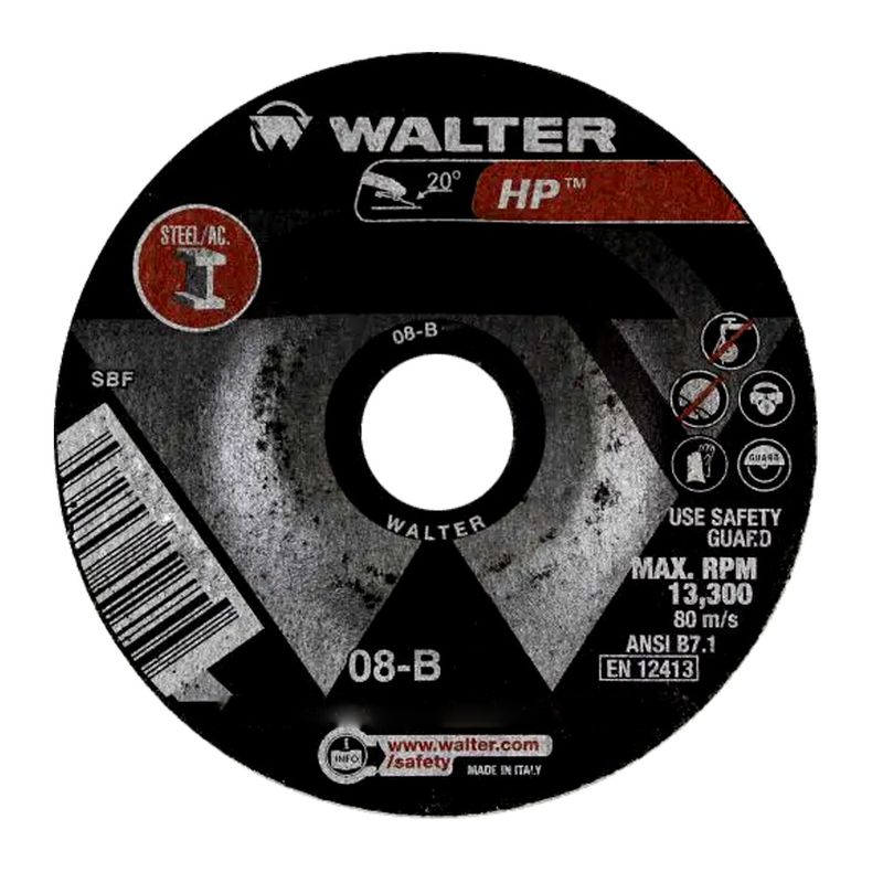 Disco de Desbaste HP para Aço e Inox 4.1/2" x 1/4" x M14 Walter