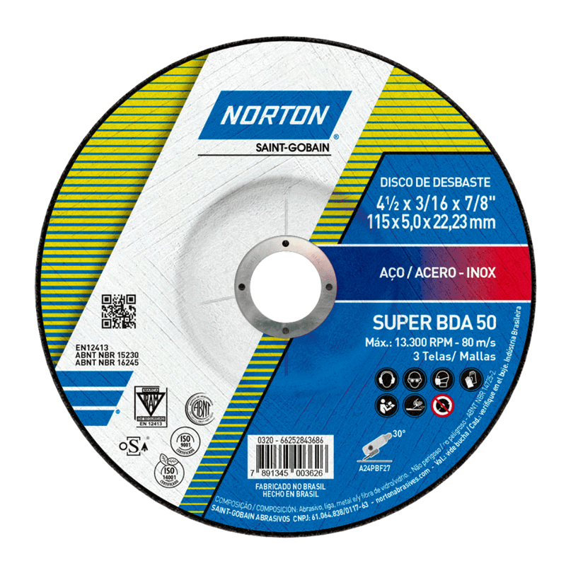• Disco Desbaste de Aço e Inox 115 x 4.8 x 22.23mm BDA50 Super Norton.