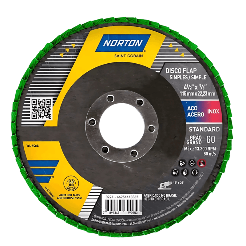 O Disco Flap 60 Standard R244 66254443862 Norton é Ideal para pequenos reparos e manutenções;