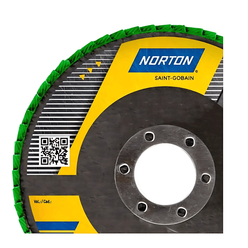O Disco Flap 115MM 60 Fibras com Standard R244 66254443862 Norton , é indicado desbaste e preparação de superfícies para pintura, remoção e nivelamento;