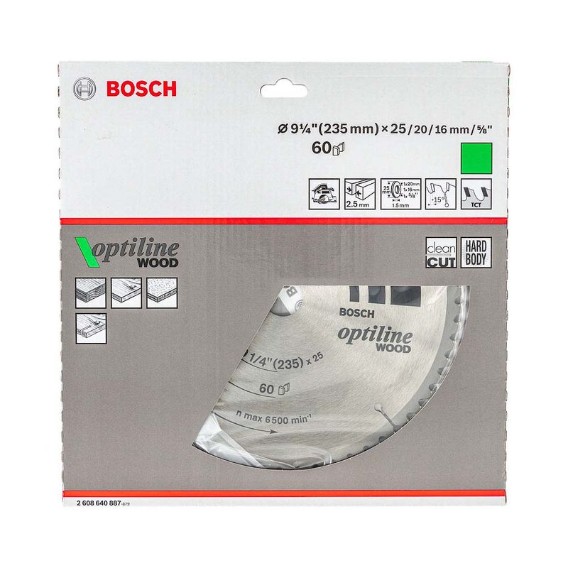 Disco Serra Circular Para Madeira 235 x 60mm Optiline Bosch.