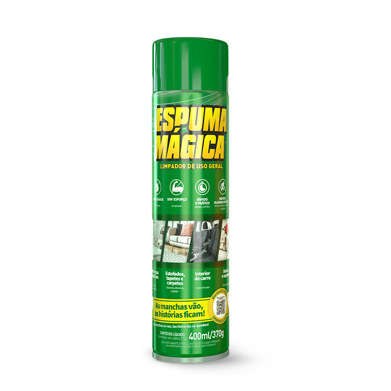 A Espuma Mágica da Proauto é um limpador instantâneo a seco de fácil aplicação: basta aplicar e esperar agir por alguns segundos. Ela foi desenvolvida para limpar todas as partes laváveis de seu veículo, especialmente tecidos (banco, teto, carpetes, consoles e etc.) removendo também as sujeiras mais difíceis como graxa, gordura, resíduos de alimentos e sujeira de tráfego.