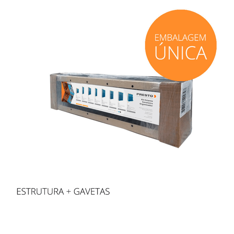 O Kit Estantes Com 25 Gavetas Azul N.3 93002 Presto oferece uma solução completa para a organização de parafusos, porcas e pequenos componentes, unindo praticidade, resistência e economia de espaço. O 93002 Presto conta com estrutura em aço com tratamento antiferruginoso e pintura eletrostática a pó, garantindo maior durabilidade mesmo em ambientes industriais. Possui 25 gavetas plásticas nº 3 empilháveis e removíveis, com porta-etiquetas que facilitam a identificação dos itens e agilizam o dia a dia. O design do 93002 Presto é compacto e ocupa até 70% menos espaço que sistemas convencionais, reduzindo custos com estoque e frete, além de ser vendido desmontado, o que facilita o transporte e a exposição em showroom, tornando-o ideal para oficinas, almoxarifados e pontos de venda.