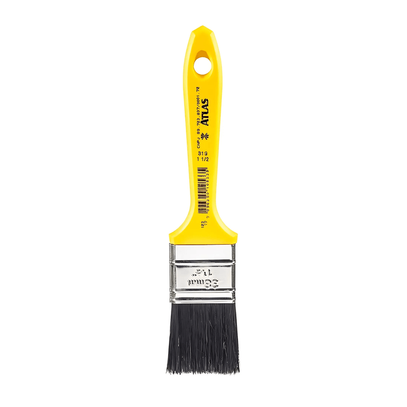 Pincel Trincha Média 131 1.1/2" 319/4 Atlas é ideal para pinturas em geral, oferecendo acabamento uniforme e preciso. A 319/4 Atlas possui cerdas pretas selecionadas, é perfeita para aplicação de tintas esmalte sintético ou à base de água, garantindo praticidade e excelente desempenho em cada projeto.