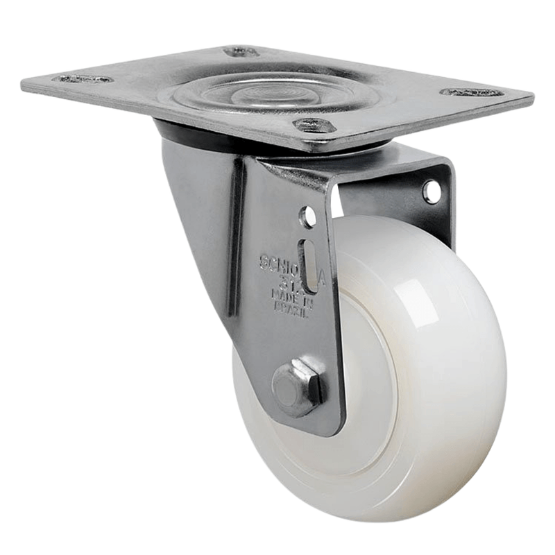 Produzida com revestimento e núcleo em Poliamida 6 (Nylon) de alta qualidade. É leve e possui ótima resistência mecânica, roda com muita facilidade exigindo menor esforço para manobras e movimentação. Ideal para aplicações em ambientes úmidos, é resistente a graxas, óleos, sais e alguns tipos de ácidos. Fabricada com material reciclável. A velocidade de trabalho indicada é até 4 km/h.