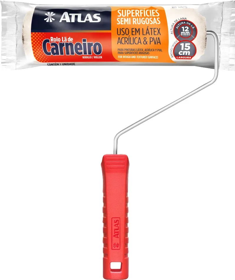 O Rolo Para Pintura De Lã Natural Com Garfo 15CM 328/15 Atlas é Indicado para pinturas em superfícies lisas e semirrugosas, este rolo é ideal para uso com tintas látex, acrílica, PVA, óleo e esmalte. O 328/15 Atlas é produzido com 100% lã natural tramada em tecido, garante acabamento uniforme e de alta qualidade em cada aplicação.