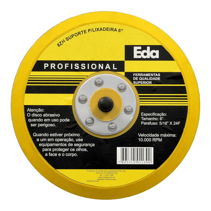 O Suporte para Lixa Sem Furo com Velcro 6" 8ZH EDA é um acessório para lixadeiras de 6 polegadas, desenvolvido para fixação rápida e segura de discos de lixa com velcro, sem necessidade de furos. O 8ZH EDA foi fabricado em borracha resistente, proporciona boa aderência, lixamento da 8ZH EDA é uniforme e reduz as vibrações, sendo ideal para trabalhos de acabamento e desbaste em diversas superfícies, com praticidade e eficiência.