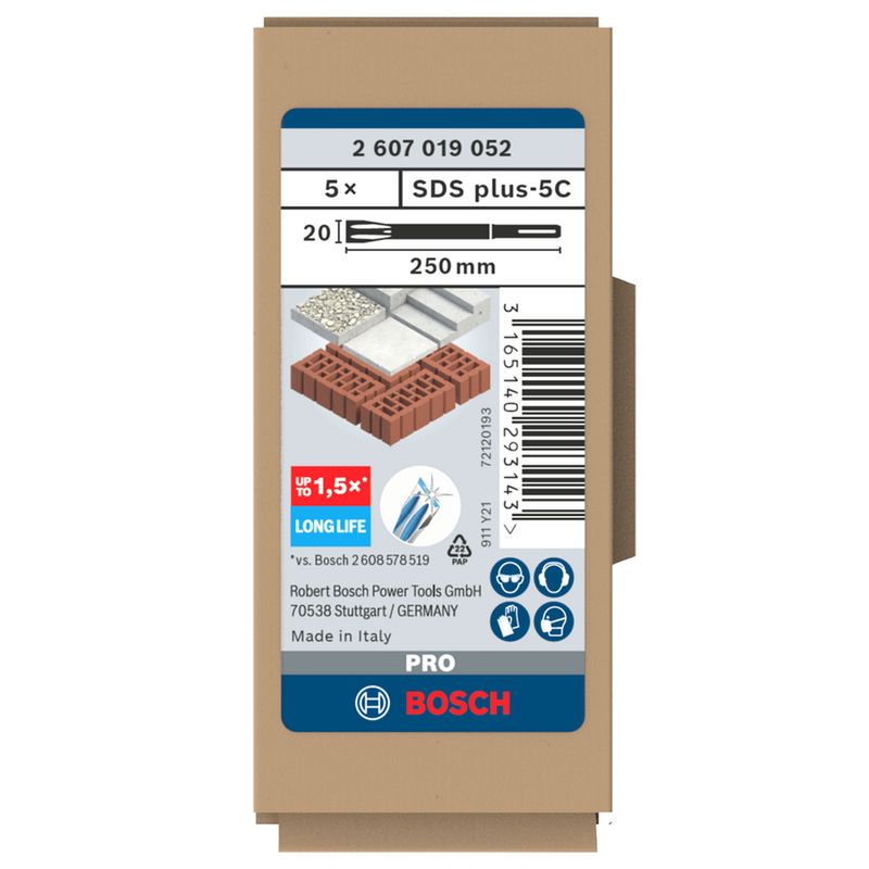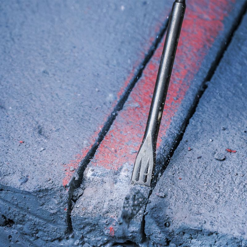A Talhadeira Bosch PRO SDS plus 5C 20x250 mm proporciona menos travamentos em concreto se comparado com os cinzéis convencionais. O design estriado do PRO SDS plus 5C garante que o cinzel crie fissuras laterais e verticais no material em que você estiver trabalhando, isso ajuda a cinzelar com mais eficiência e evita que o cinzel fique preso no material. Além das fendas laterais, as nervuras de auto-afiamento criam também fendas verticais no material além de manter uma ponta uniforme durante toda a sua vida proporcionando uma taxa de remoção de material superior. A Talhadeira Bosch PRO SDS plus 5C 20x250 mm destina-se a utilização em concreto e tijolo, ideal para trabalhos de ajuste para destruir ou remover paredes, restaurar juntas e limpar reforços. Compatível com sistema de encaixe SDS plus. Possui até 1,5x mais vida útil que o cinzél 2608578519 da Bosch. Garantia 6 meses Bosch.