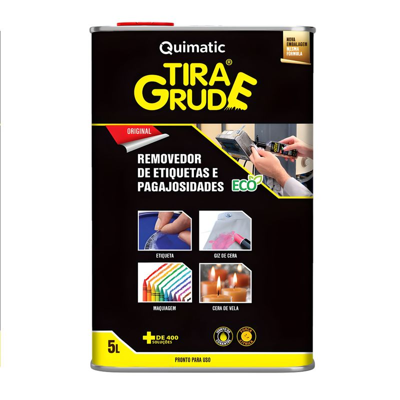 - Tira Grude é indicado para a limpeza de sujeiras de difícil remoção, como: colas, chicletes, tintas, piche de asfalto, batom, maquiagem, ceras, sangue, entre outras sujeiras.