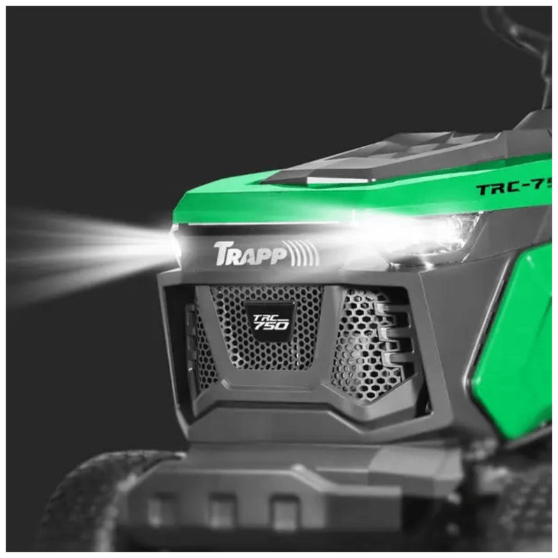 - Com rendimento médio de 5.000 m²/h e consumo aproximado de 2 L/h, o trator TRC-750 é econômico e eficiente. Seu tanque de 8,5 litros permite cortes contínuos equivalentes a até três campos de futebol por abastecimento. O design exclusivo da 3935044 Trapp combina sofisticação e ergonomia, elevando a experiência do operador.